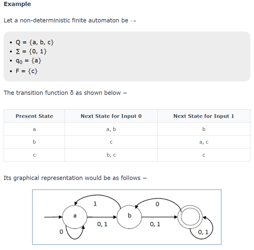 NFA (Non-Deterministic Finite Automaton) is a type of finite automaton in which, for a given state and input symbol, the machine can move to zero, one, or multiple next states.